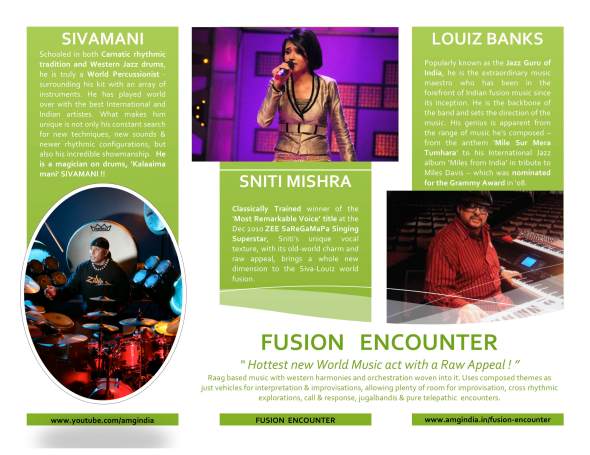 This is the coming together of two of the biggest World Fusion legends of India, Jazz Guru LOUIZ BANKS & Wiz Percussionist SIVAMANI to present the finest young, new, talented Indian Classical singer SNITI MISHRA, who won the “Most Remarkable Voice” title at the Dec 2010 ZEE SaReGaMaPa Singing Superstar TV contest.